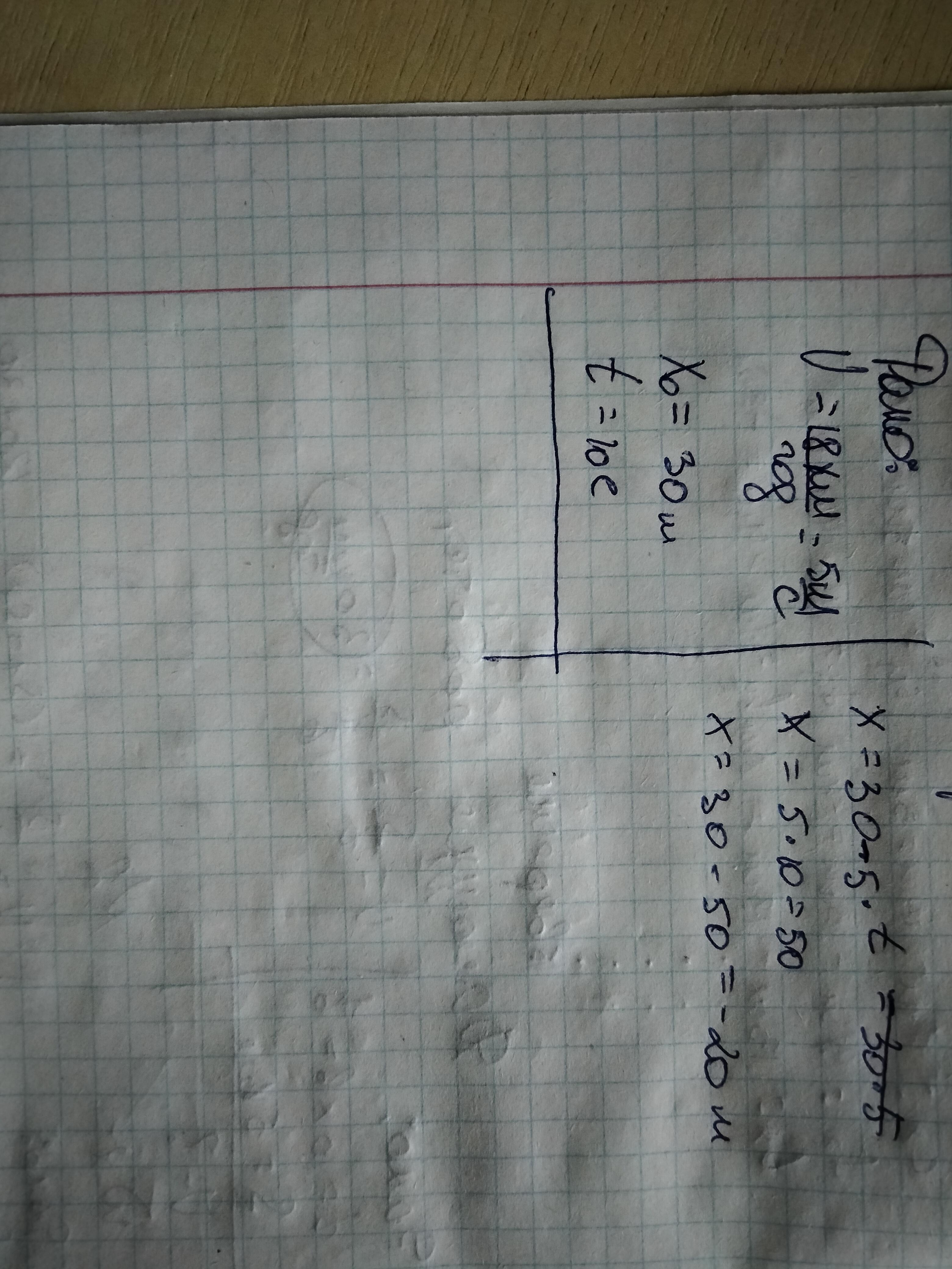 Тіло рухається в напрямку, протилежному напрямку осі Ох, з постійною швидкістю 18 км/год. Початкова координата тiла дорівнює 30 м. Запишіть рівняння координати. Знайдіть координату тiла та модуль його переміщення через 10 с пiсля початку спостереження.