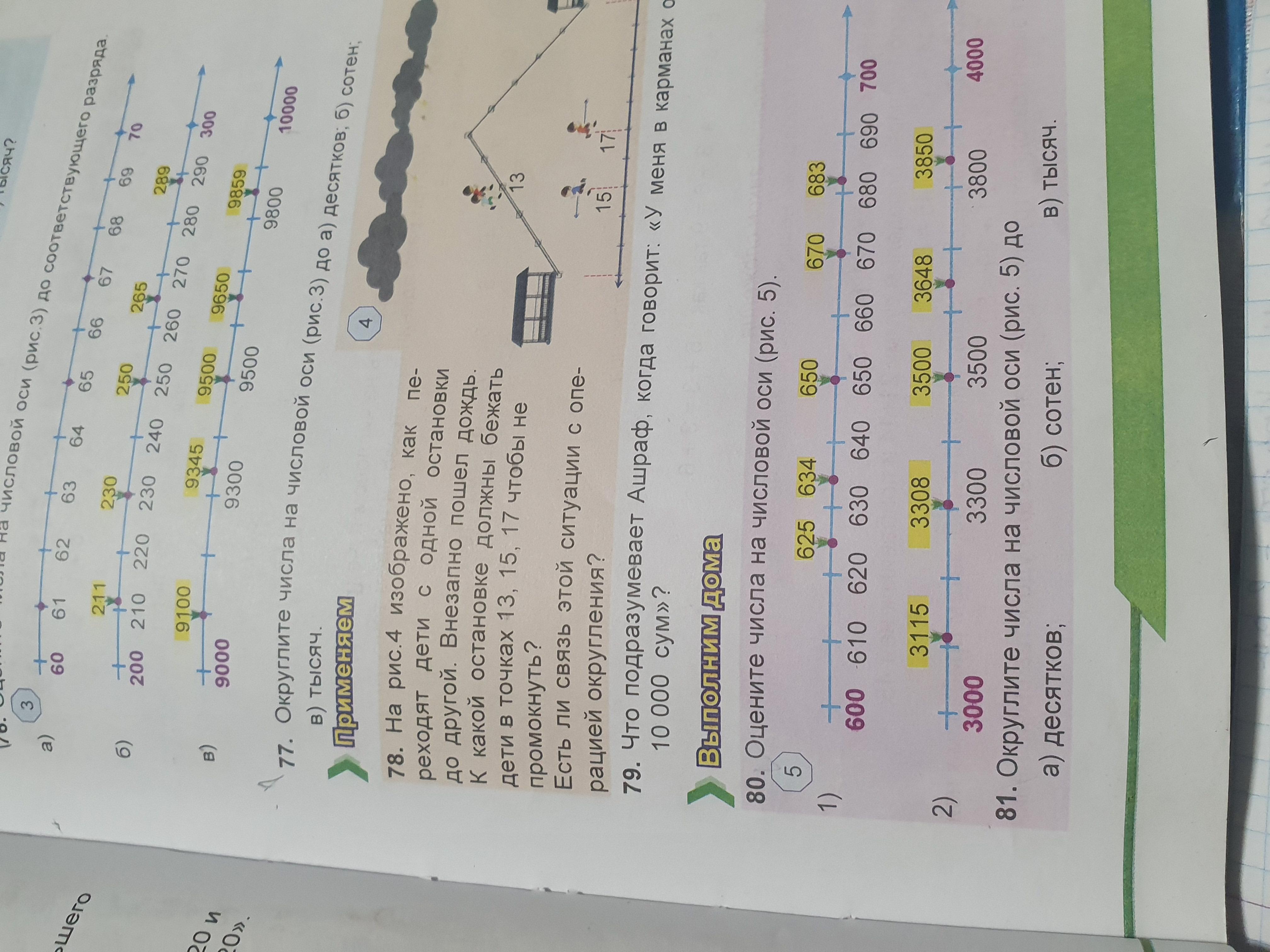 Помогите пожалуйста 77. Округлите числа на числовой оси (рис.3) до а) десятков; б)сотен; в) тысяч