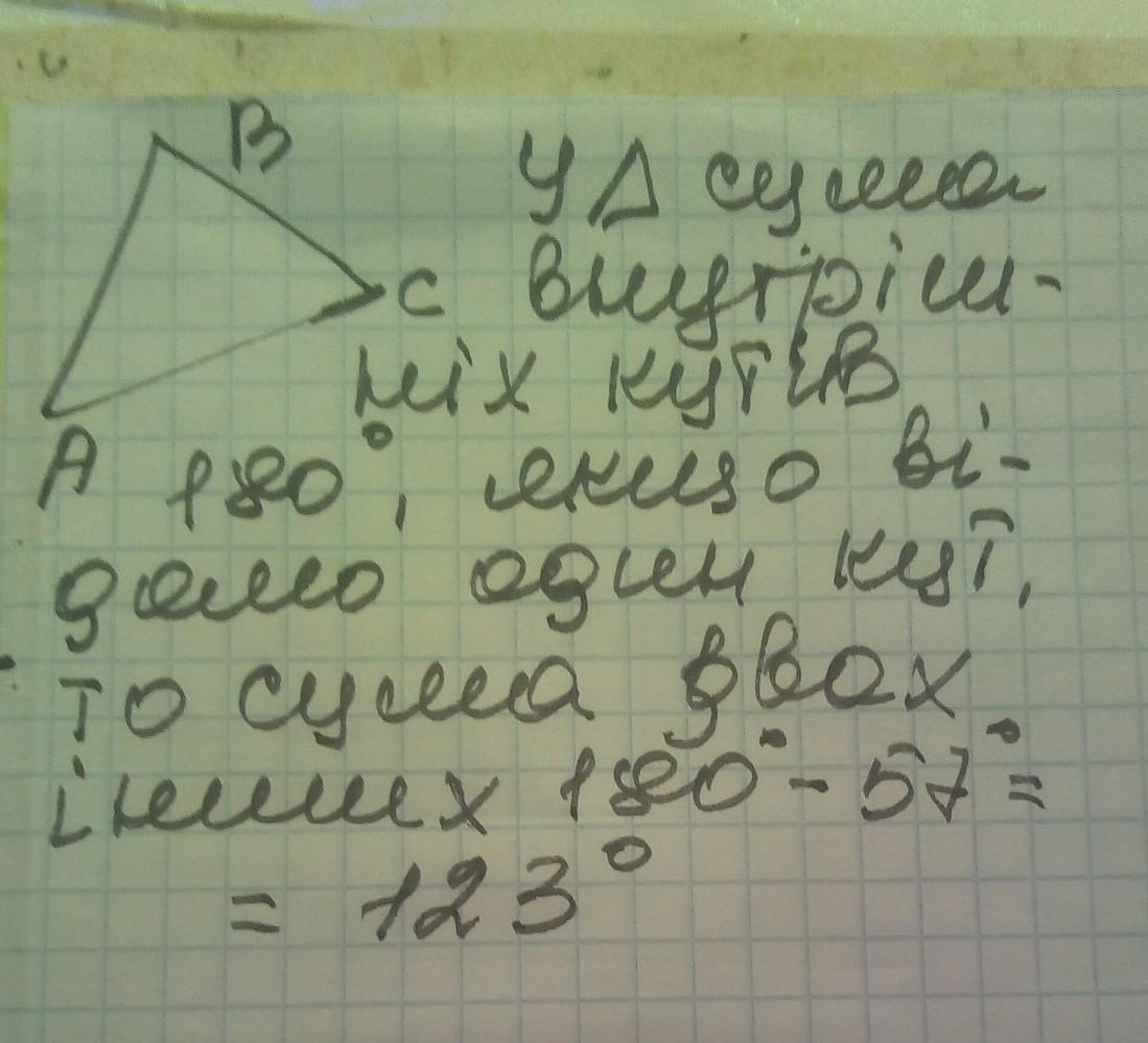 180-57=123,так як сума кутів трикутника дорівнює 180