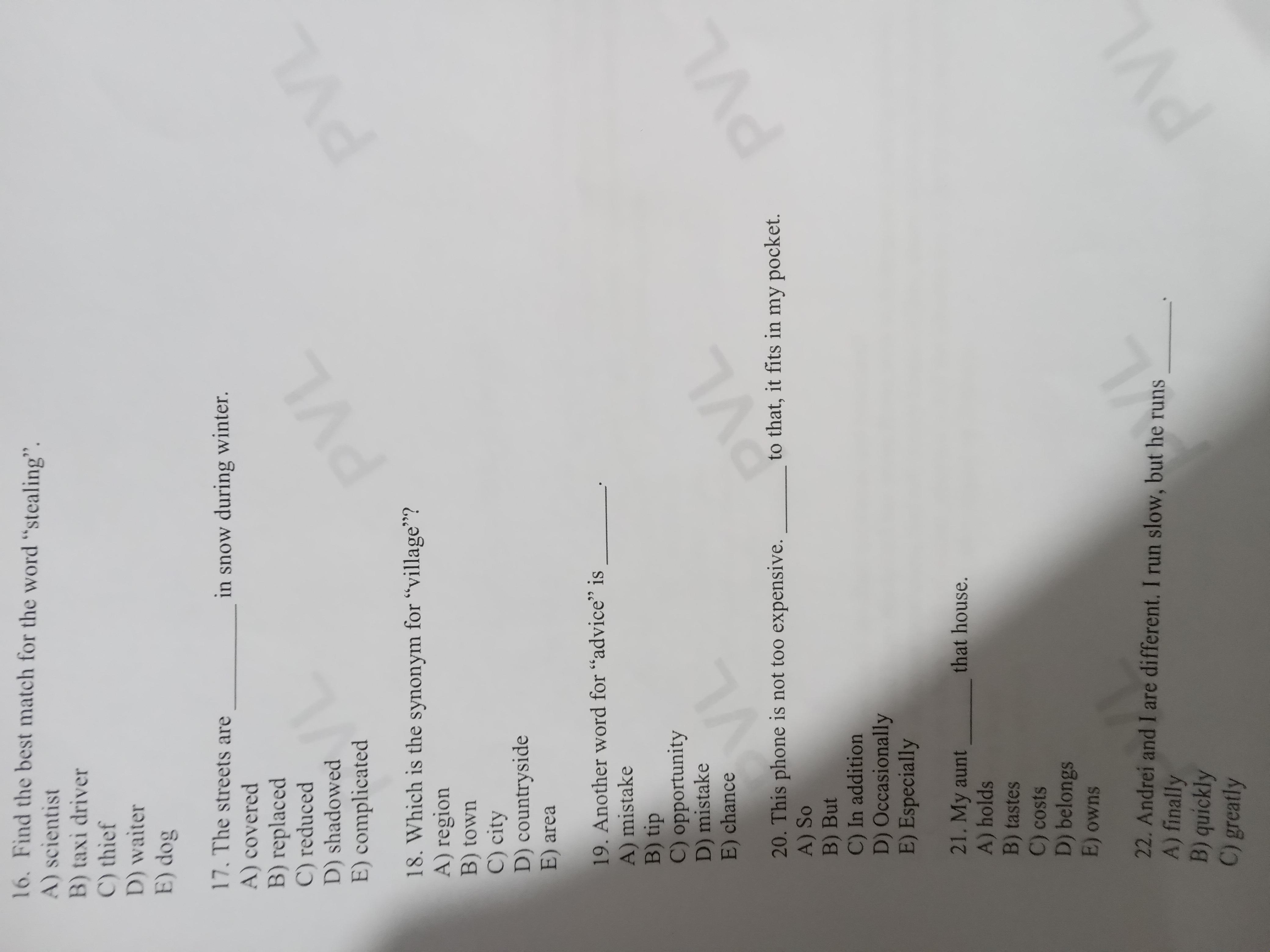 я не добавила в 22 там продолжение D)carefully E)lightly