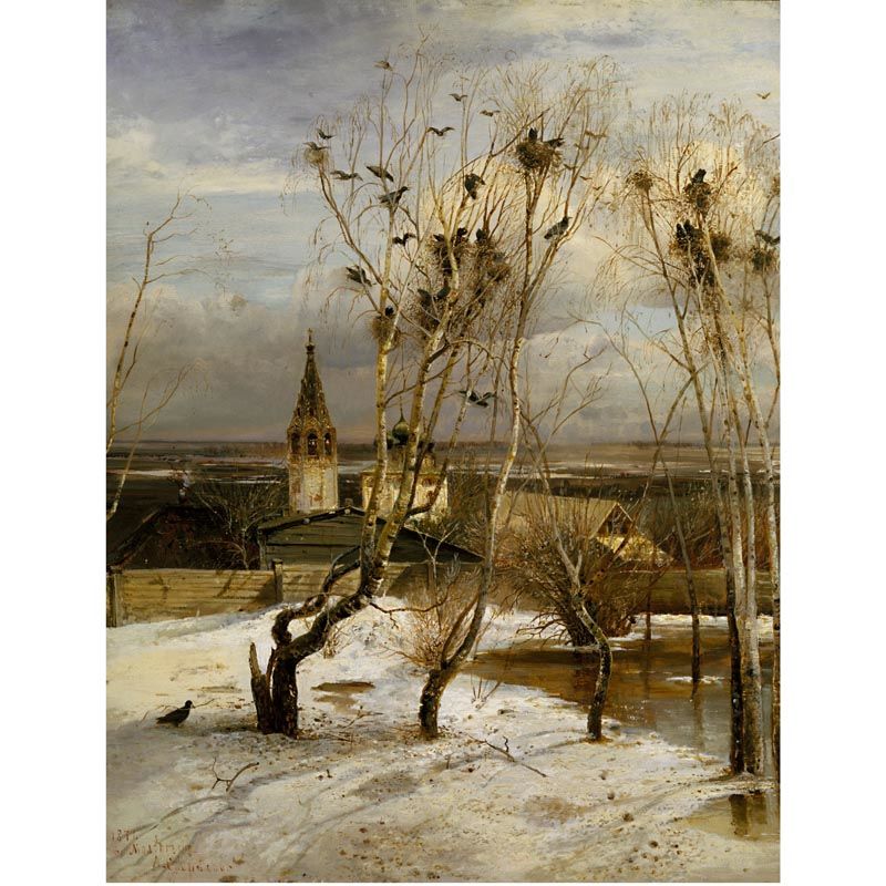 текст: ГРАЧИ (прилетевшие с юга; с криком опустившиеся на ветви берез; возвестившие своим радостным гомоном о приходе долгожданной весны; деловито вьющие гнезда), СНЕГ ( уже давно потемневший; тающий под лучами неяркого весеннего солнца; слегка пробурившей; покрывшийся ледяной корочкой), ЗАБОР ( обласканный теплым светом), освещенный весенним солнцем; отбросивший холодные синие тени на посеревший снег), ЛЕС (узкой полоской синеющий на горизонте; едва виднеющийся вдали), ОБЛАКА( нежно голубеющие; пропитанные весенним воздухом). ПРОШУ СРОЧНО!
