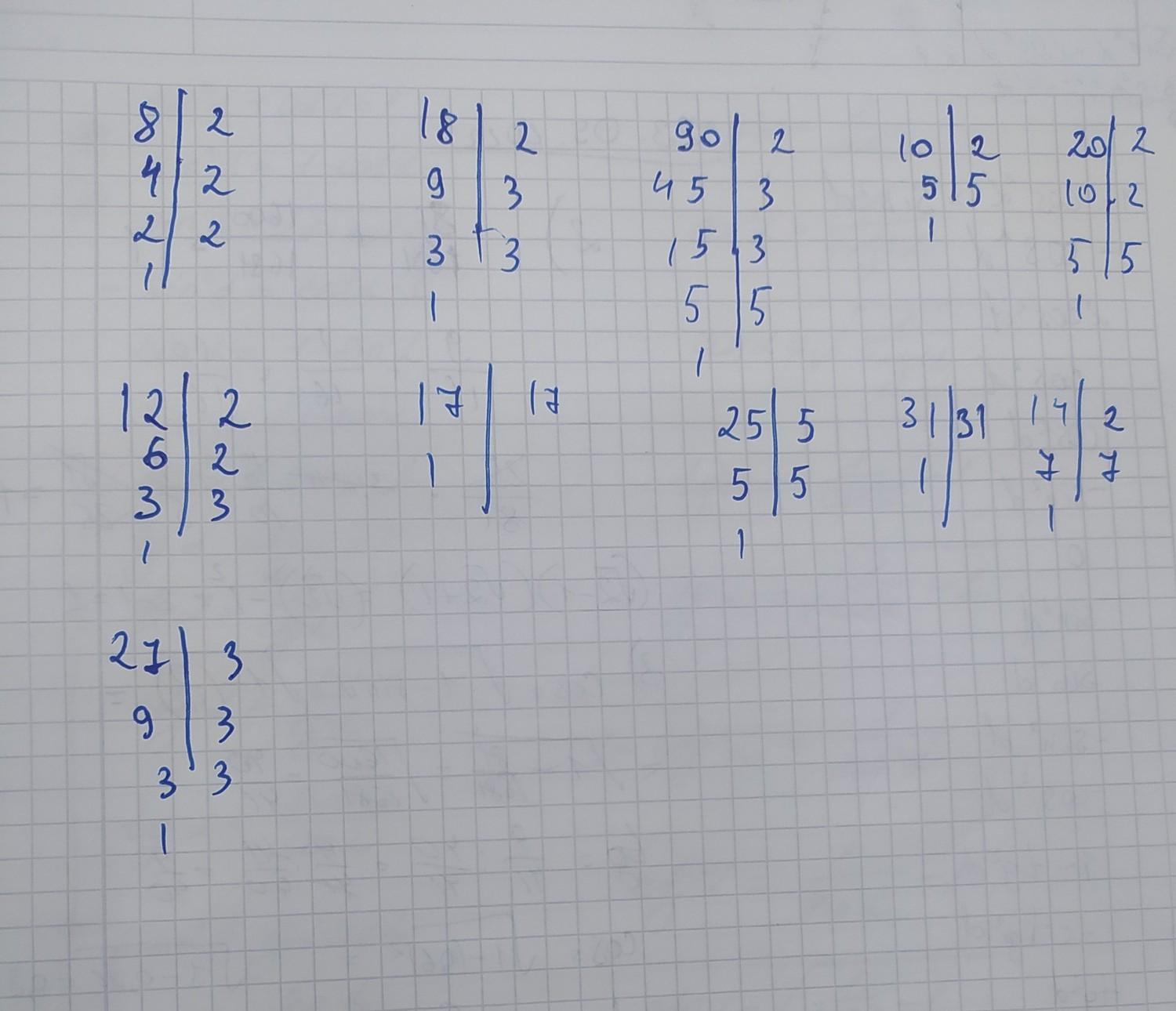 Розклади 1) 8; 6) 18; 90 D 2) 10; 7) 20; на прості множники число: 3) 12; 5) 17; 8) 25; 10) 31. 4) 14; 9) 27;
