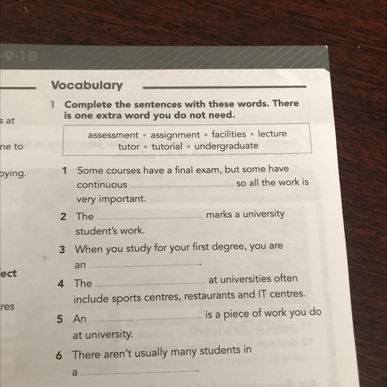 assessment • assignment • facilities • lecture • tutor • tutorial • undergraduate