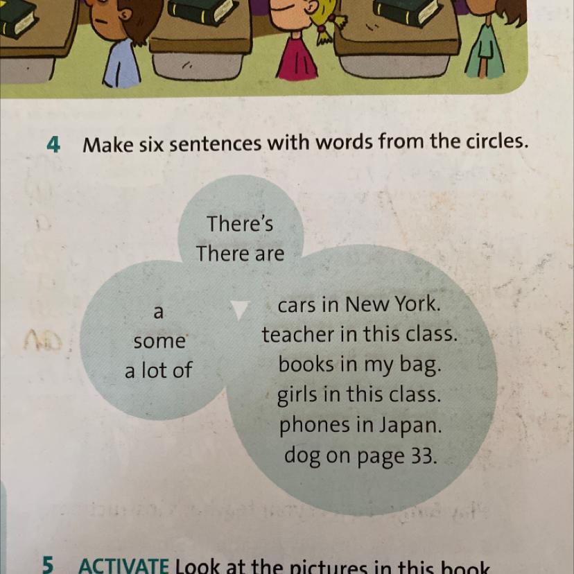 There are a lot of cars in New York. There is a teacher in this class. There are some books in my bag. There are a lot of girls in this class. There are a lot of phones in Japan. There is a dog on page 33. (Отметьте как лучший ответ пожалуйста)