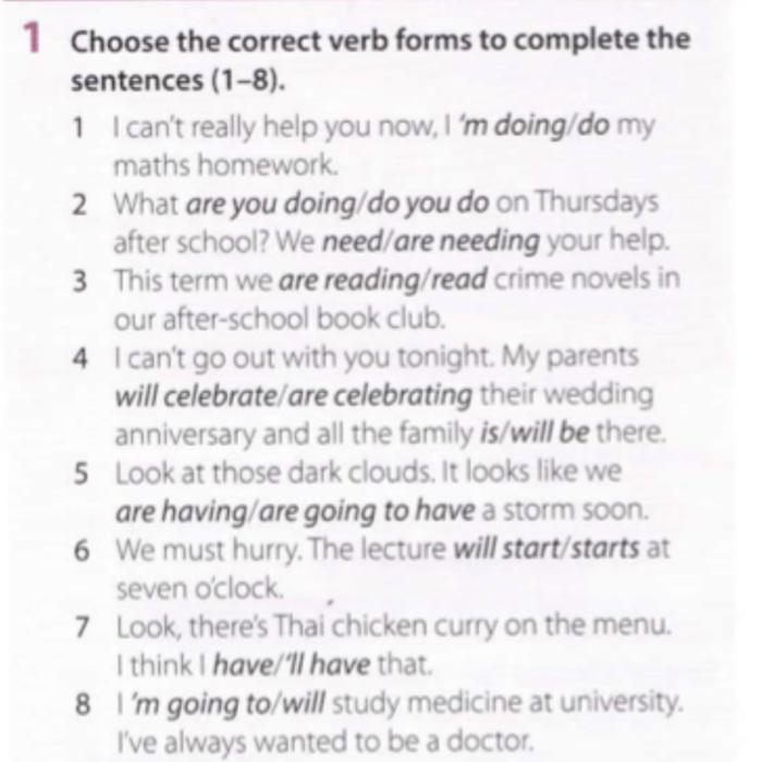 1 Choose the correct verb forms to complete the