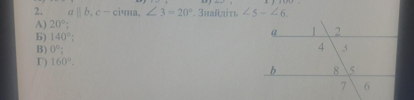 кут 5 = 180 - 20 = 160° - суміжний з кутом 6
