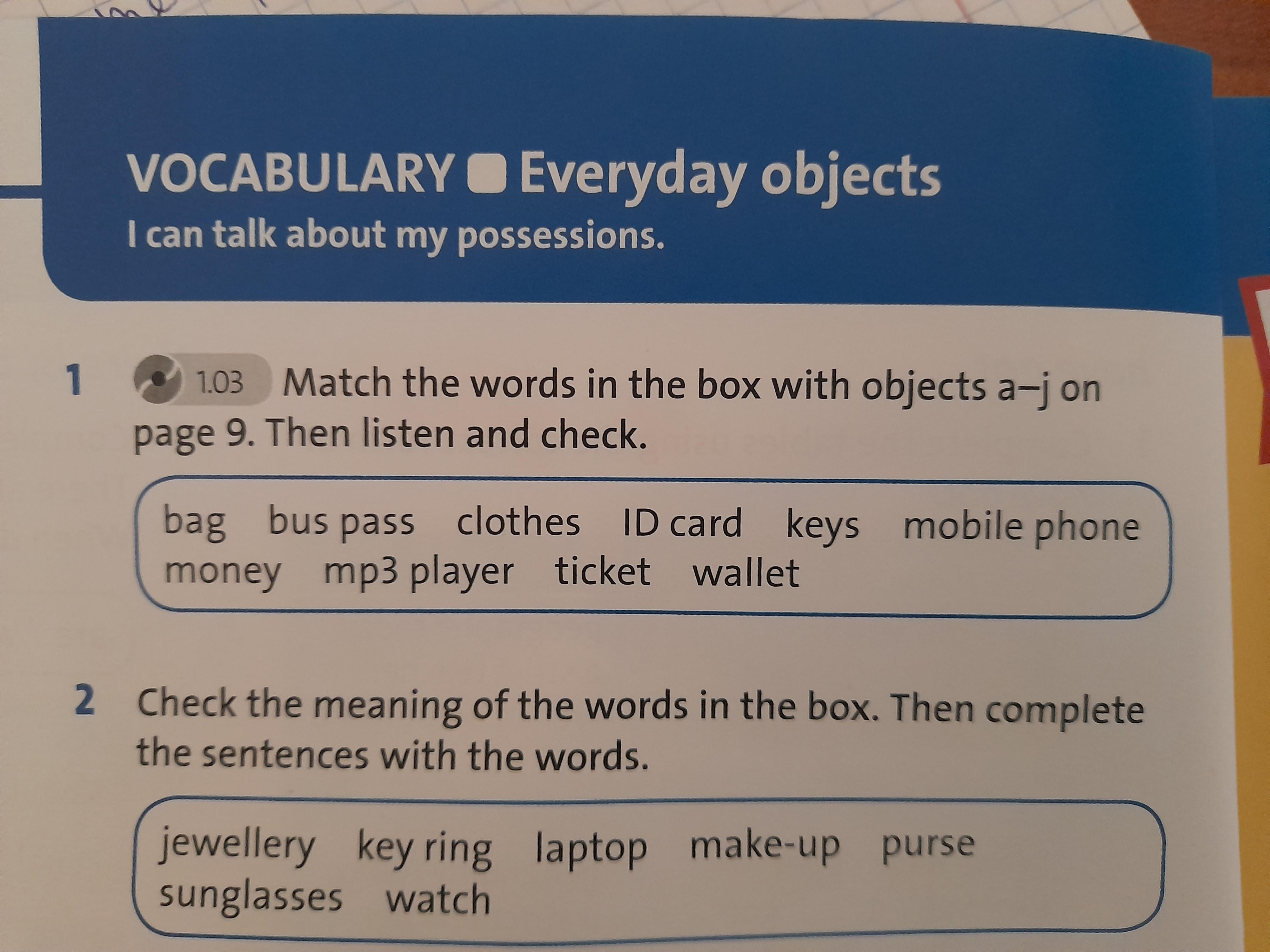Дам 20 баллов. 1.Match the worlds in the box with objects a-j on page 9.Then listen and check.