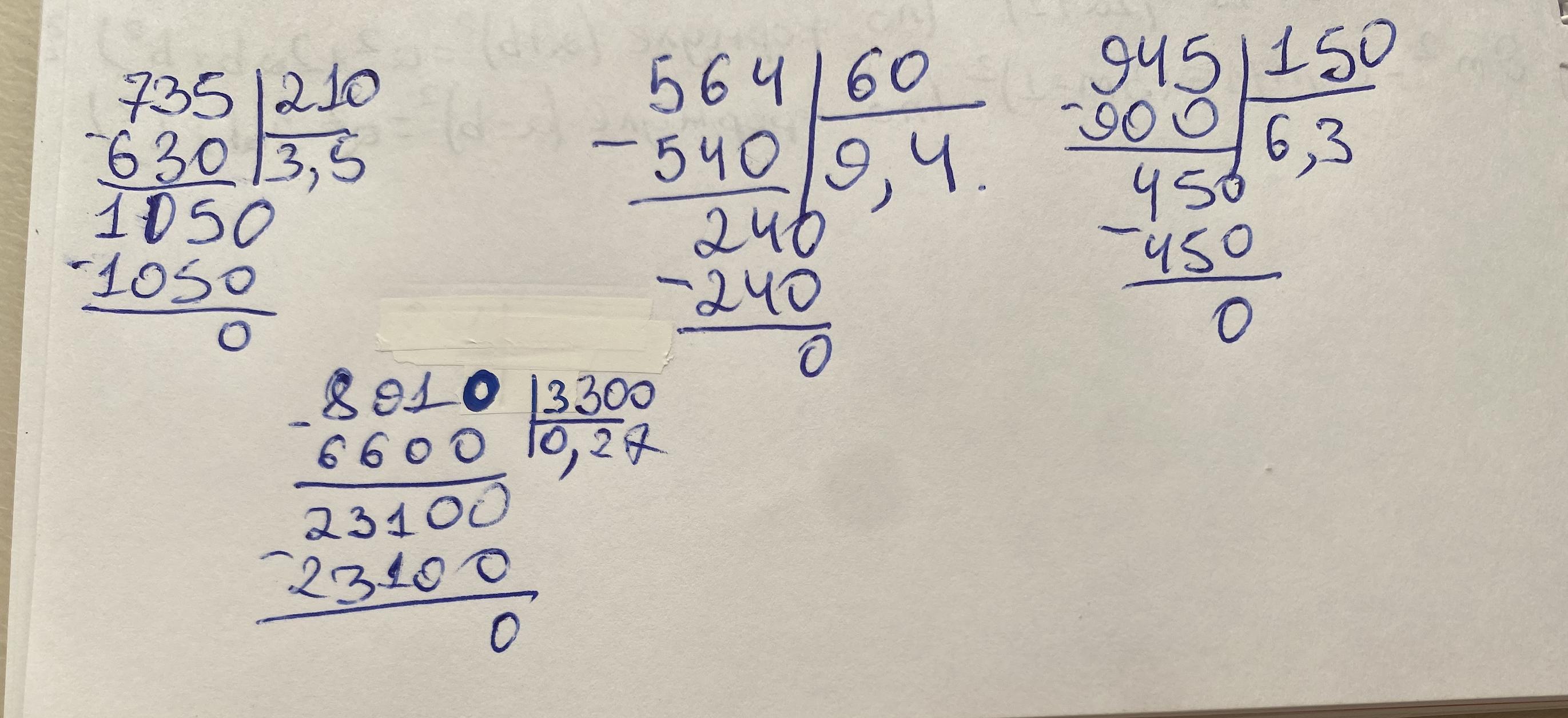 Вот примеры : 56,4:6 94,5:15 73,5:21 8,91:33. Мне надо записать это в столбик скиньте фото как это записать