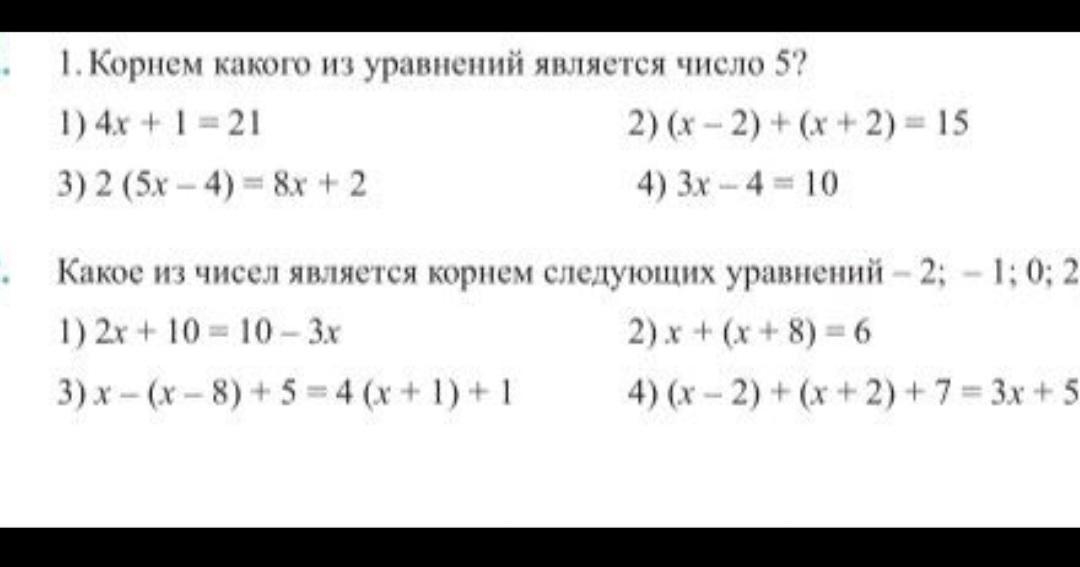 Какое из чисел является корнем следующих уравнений -2 ; -1 ; 0 ; 2