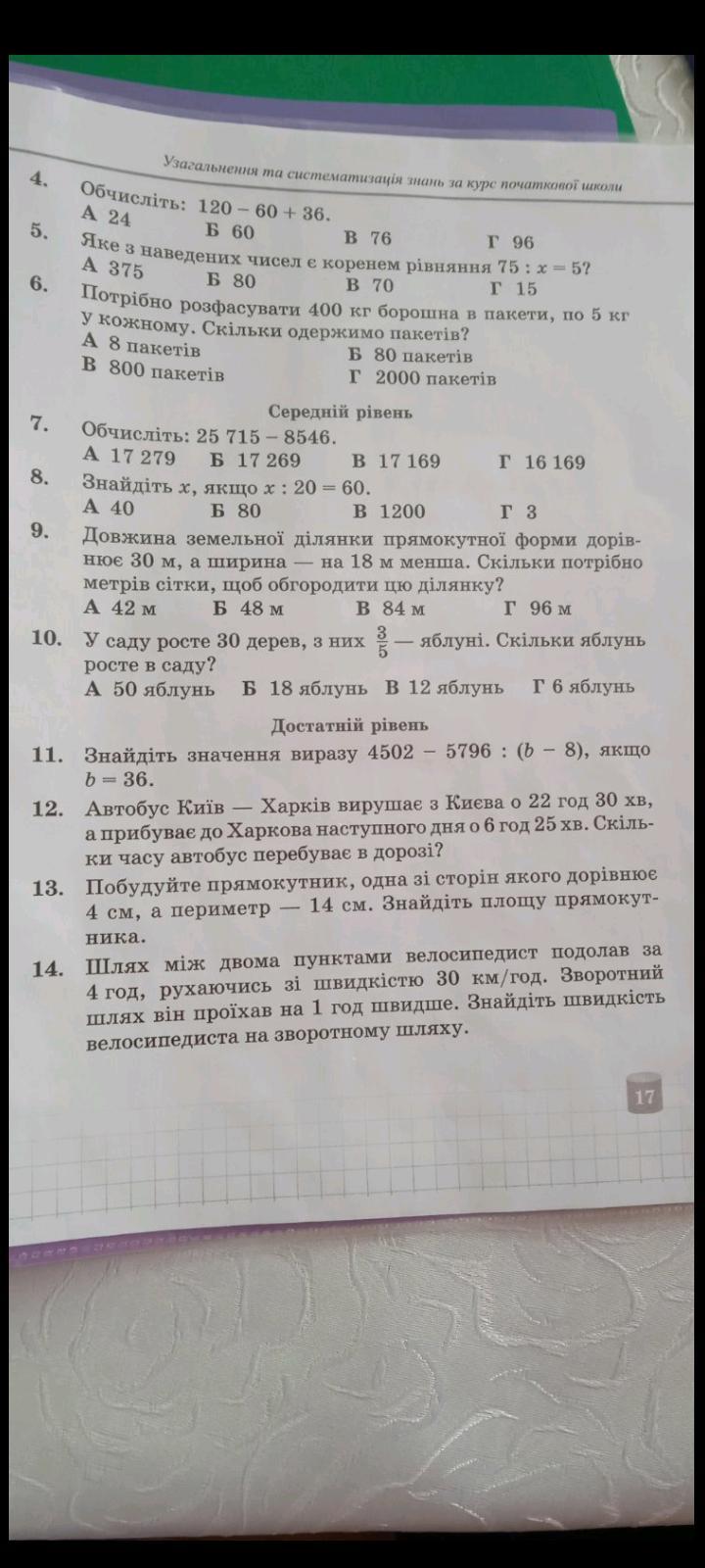 4. Шлях між двома пунктами велосипедист подолав за 4 год, рухаючись зі швидкістю 30 км/год. Зворотний шлях вiн проїхав на 1 ro*pi швидше. Знайдіть швидкість велосипедиста на зворотному шляху.