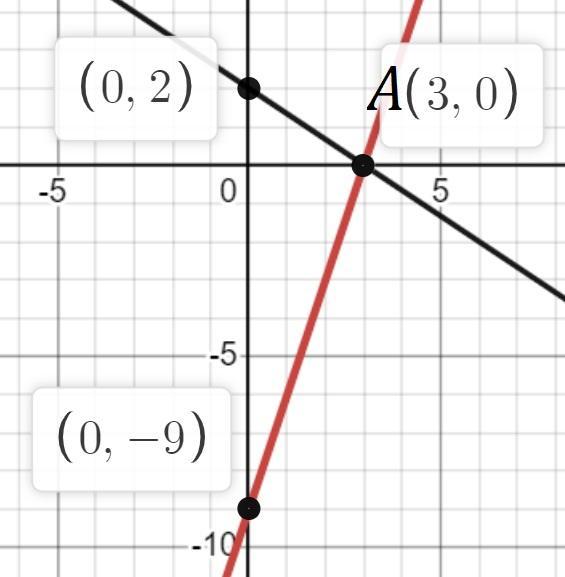 3х - у = 9; => y=3x-9; при х=0 у=-9; при у=0 x=3.