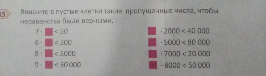 15 Впишите в пустые клетки такие пропущенные числа, чтобы неравенства были верными. 7. < 50 6.