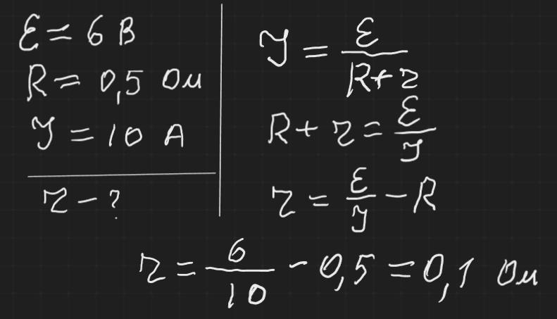 (6 B - 10 А · 0,5 Ом) / 10 А = 0,1 Ом