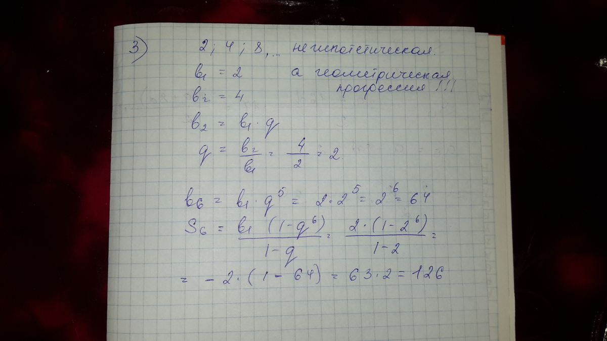 дана гипотетическая прогрессия 2;4;8. 1)найдите шестой член прогрессии. 2)найдите сумму первых шести членов прогрессии.