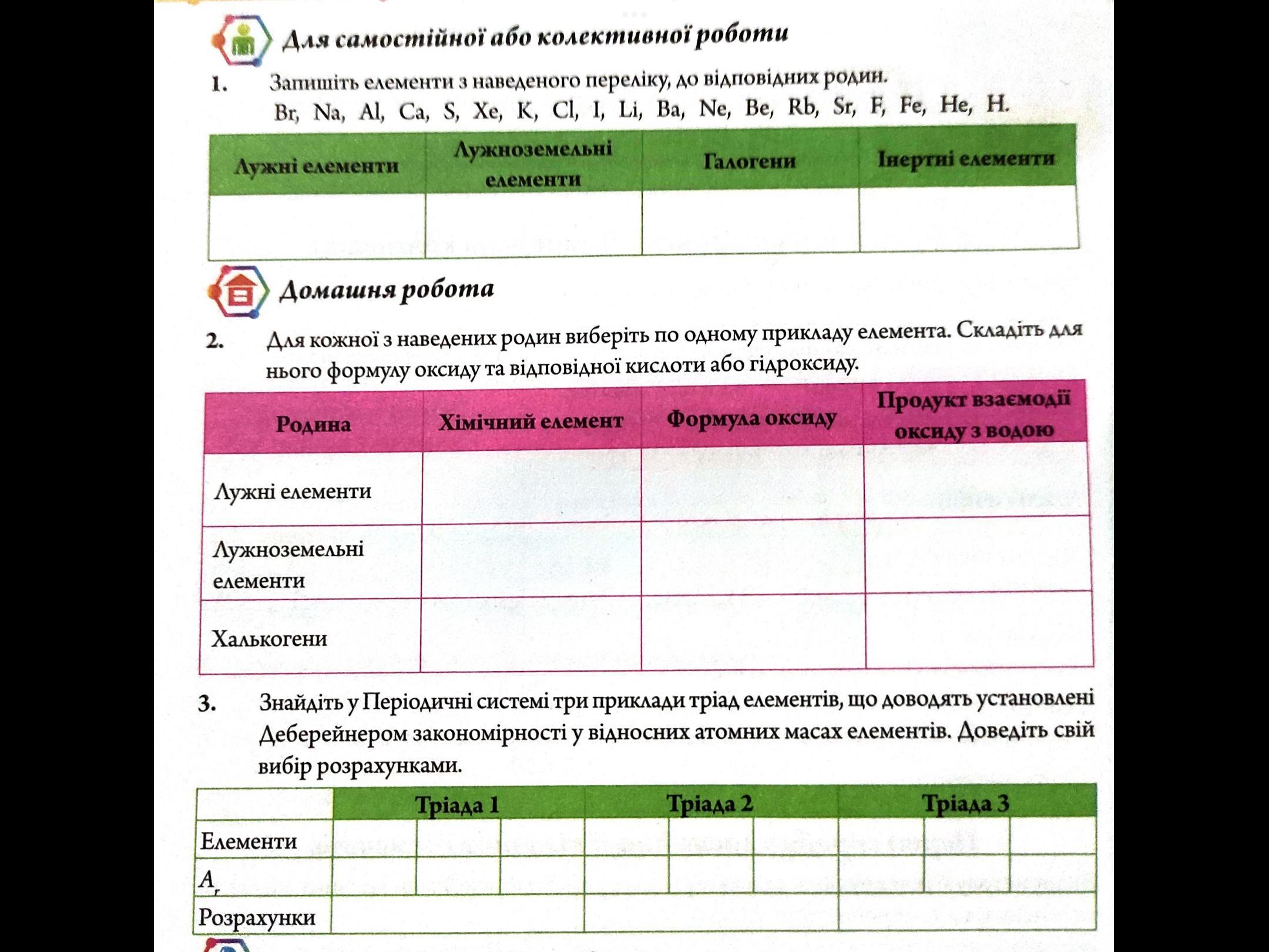В первом задании я тебе все написала элементы, тебе нужно только посмотреть какие у тебя есть, каких нет и выписать.