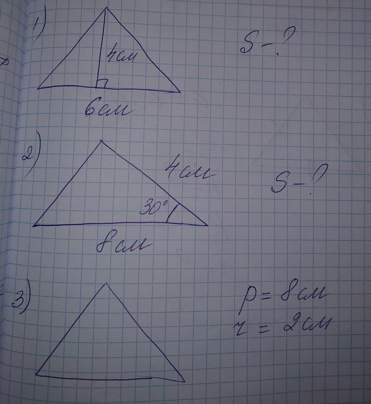 S=1/2×a×b×sinγ=1/2×8×4×1/2=8 см²