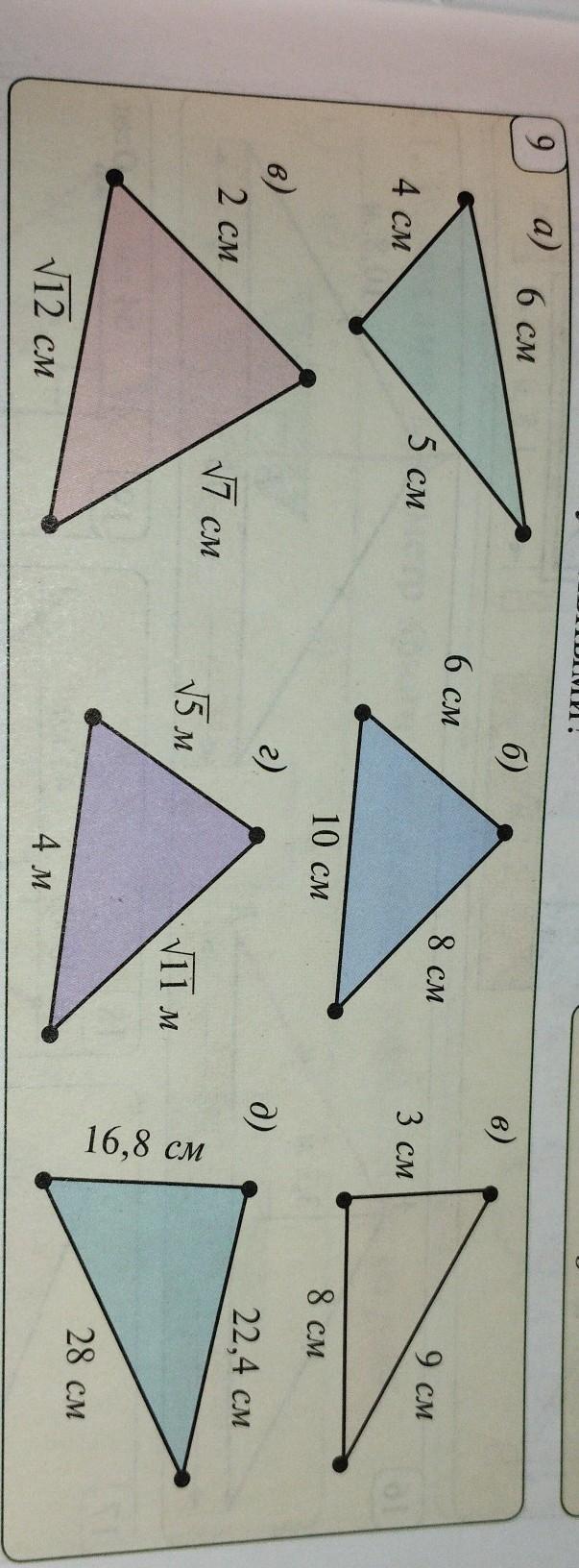 на рисунке 9 некоторые неточности изображены треугольники Какие из них являются прямоугольными