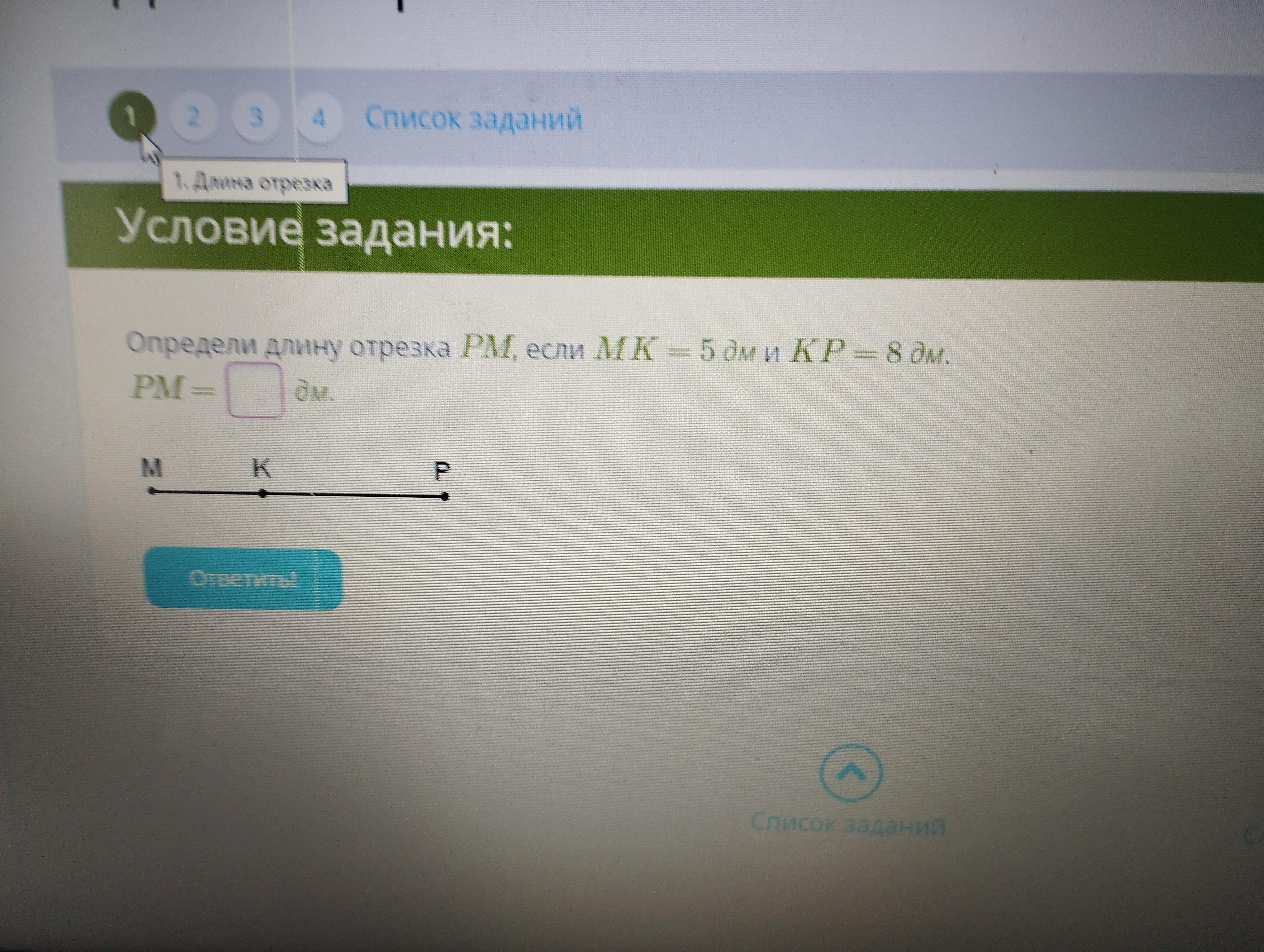 1.Mk+Kp=Pm то есть Pm=5дм+8дм=13дм