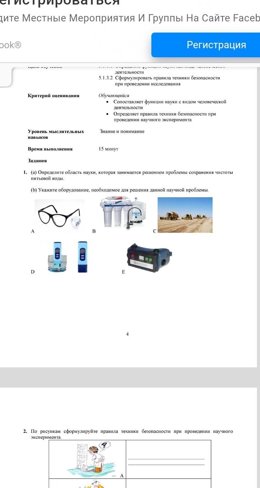 Время выполнения Задания 1. (а) Определите область науки, которая занимается решением проблемы сохранения чистоты питьевой воды. (b) Укажите оборудование, необходимое для решения данной научной проблемы. A 15 минут | B E