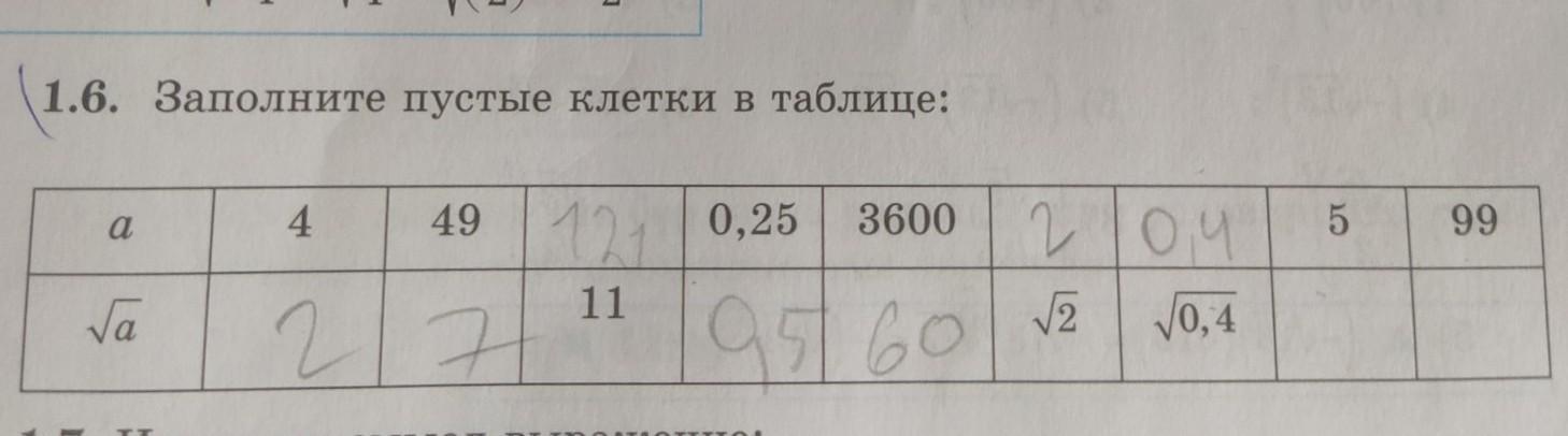 1.6. Заполните пустые клетки в таблице:
