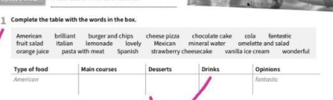 Main courses : Burger and chips, chees pizza, Fruit salad , omelette and salad, pasta with meat
