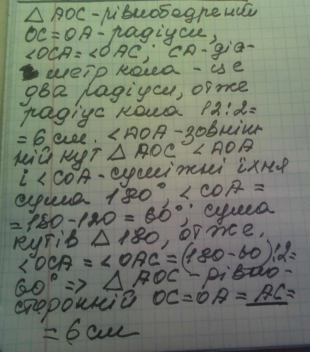 Объяснение:DOA=120° , СОА=60° как смежный угол ; CD диаметр, ОС=6см;