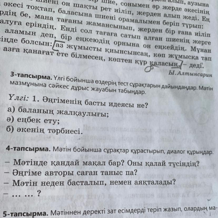 4-тапсырма. Мәтін бойынша сұрақтар құрастырып, диалог құрыңдар.