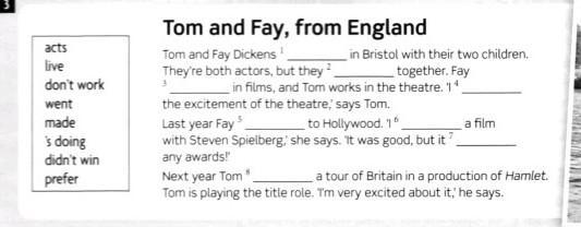 Ответ:live,don’t work,acts,made,went,prefer, didn’t win,s going