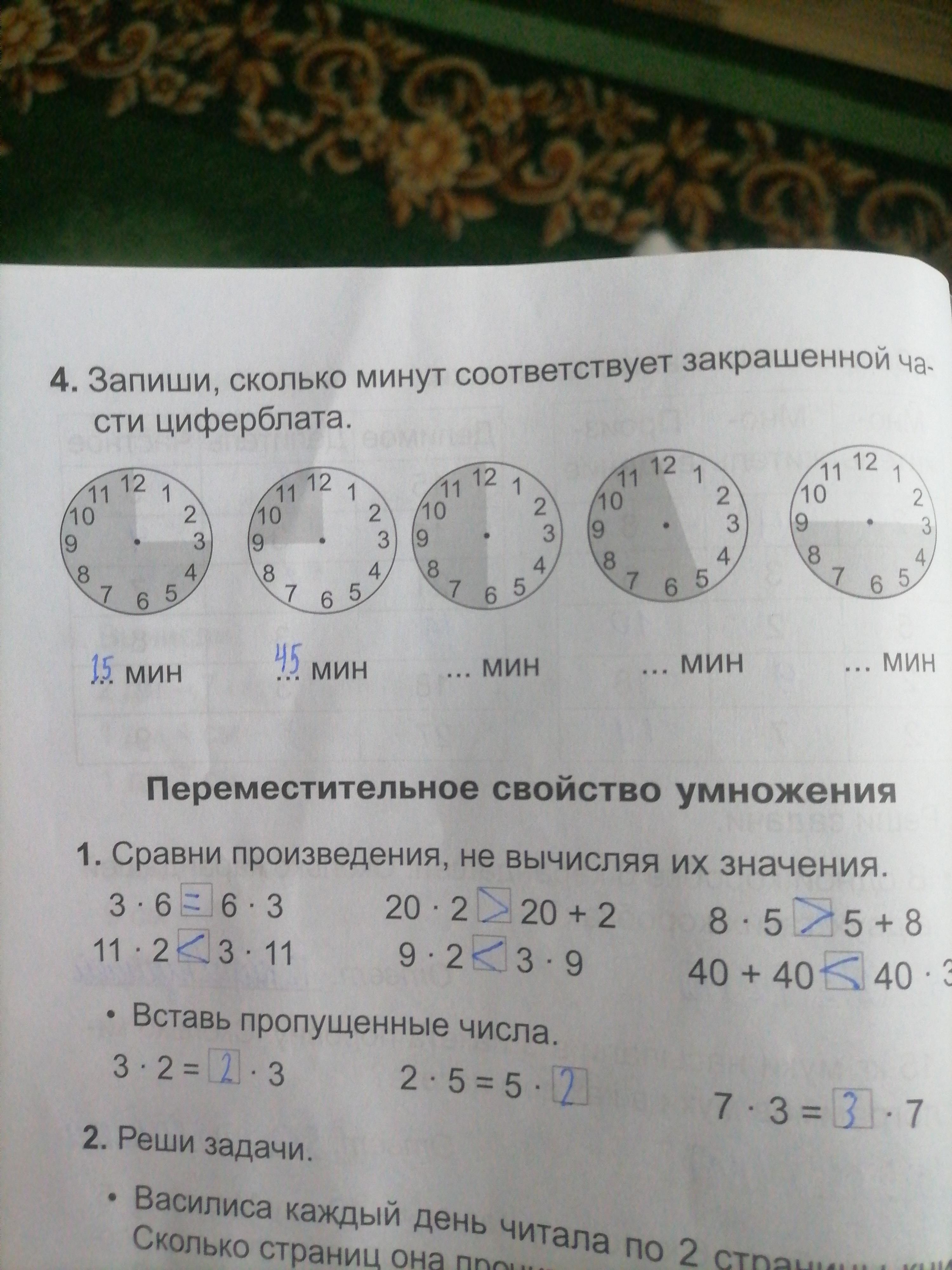 Ты не правильно написал/ла ответ в первых двух, в задании пишется сколько минут соответствует закрашеной части а ты написал/ла тот ответ который соответствует белой части