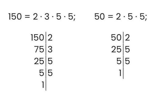 НОД (50; 150) = 2 * 5 * 5