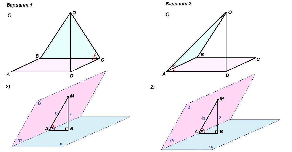 Итак, AD⊥AB, OA⊥AB, значит ∠OAD - линейный угол двугранного угла между плоскостями (ОAВ) и (АВС).