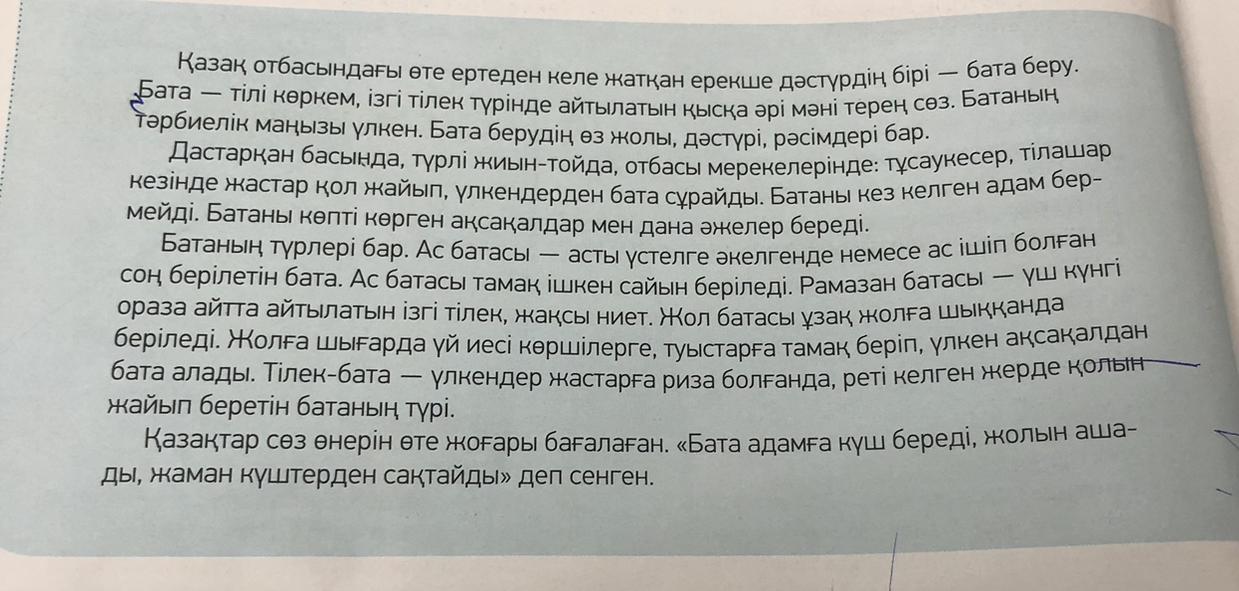 помогите пожалуйста! нужно рассказать то, о чем ты думаешь о тексте : МЕНЫҢ ОЙЫМША, СЕБЕБІ, МЫСАЛЫ, ҚОРЫТА АЙТҚАНД (текст на фото) можете написать как и на русском, так и на казахском. помогите прошууу:
