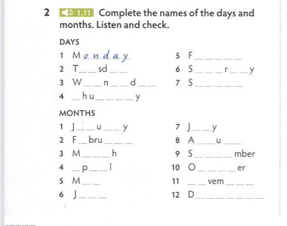 2. Tuesday, 3. Wednesday, 4. Thursday, 5. Friday, 6. Saturday, 7. Sunday