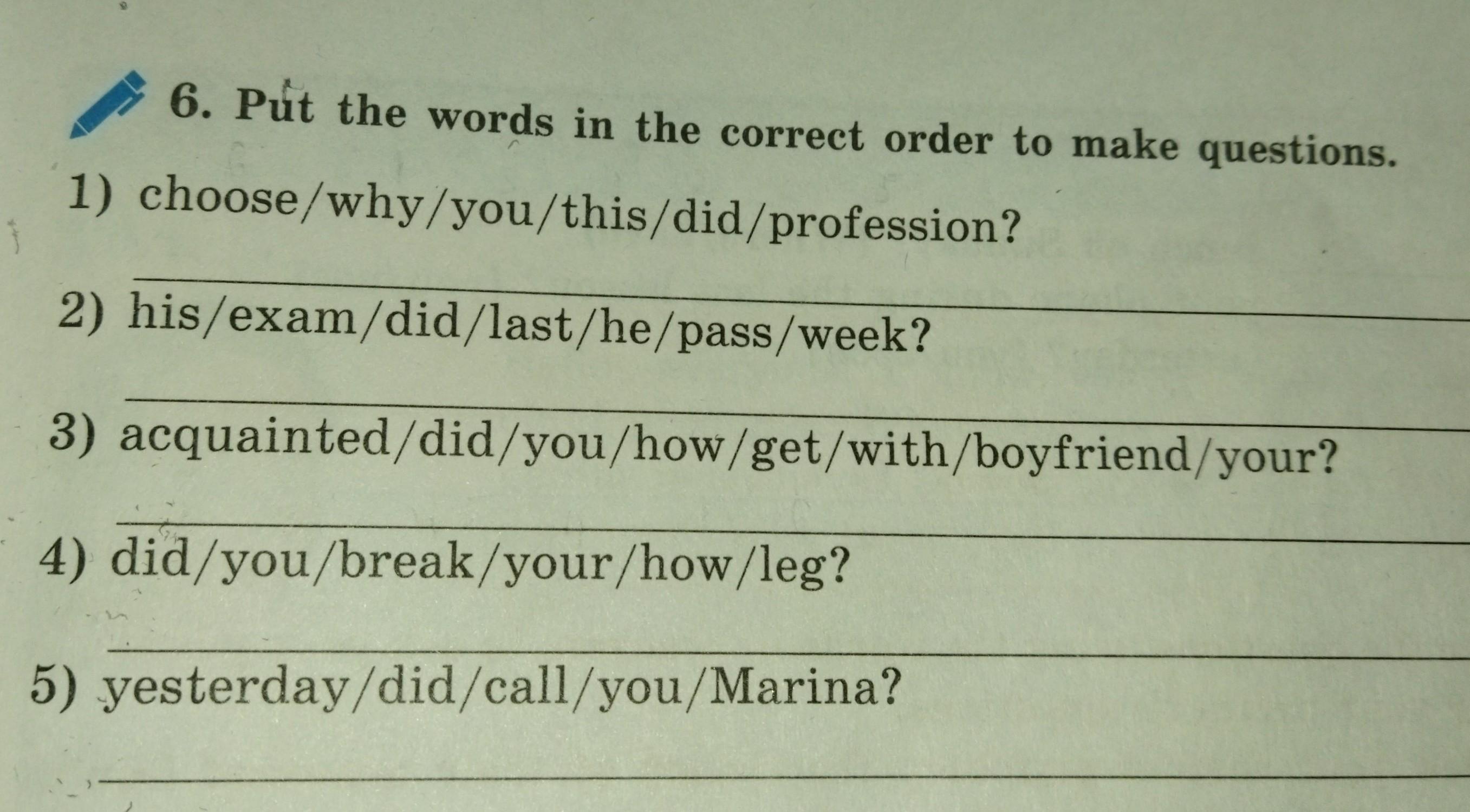 5. Did you call Marina yesterday?