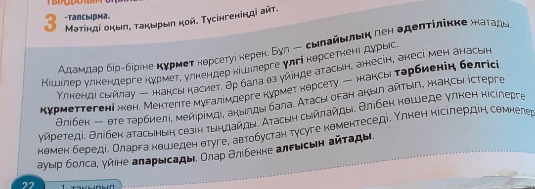 там написано Задание 3: Прочитайте текст и запишите его. Скажи мне, что ты понимаешь.
