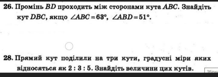 26 . ∠DBC = ∠ABC - ∠ABD = 63° - 51° = 12° ; ∠DBC = 12° .