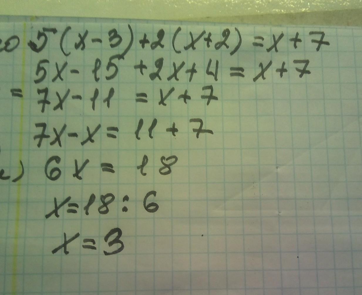 розв’яжіть будь ласка рівняння 5(x-3)+2(x+2)=x+7