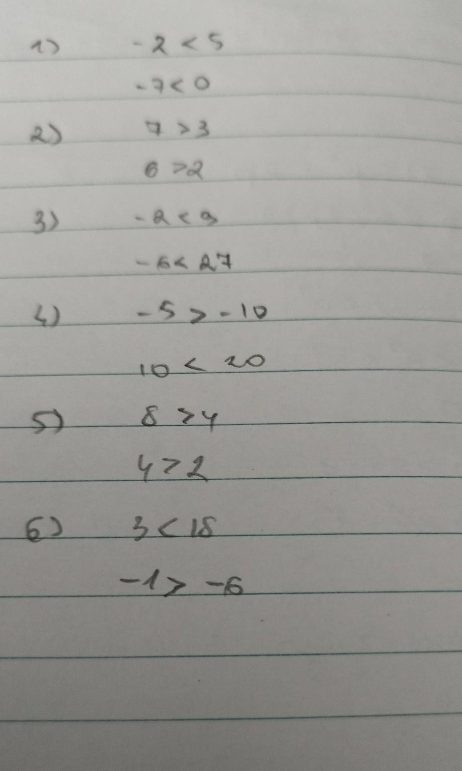 4) обидві частини нерівності -5 > -10 помножимо на -2;