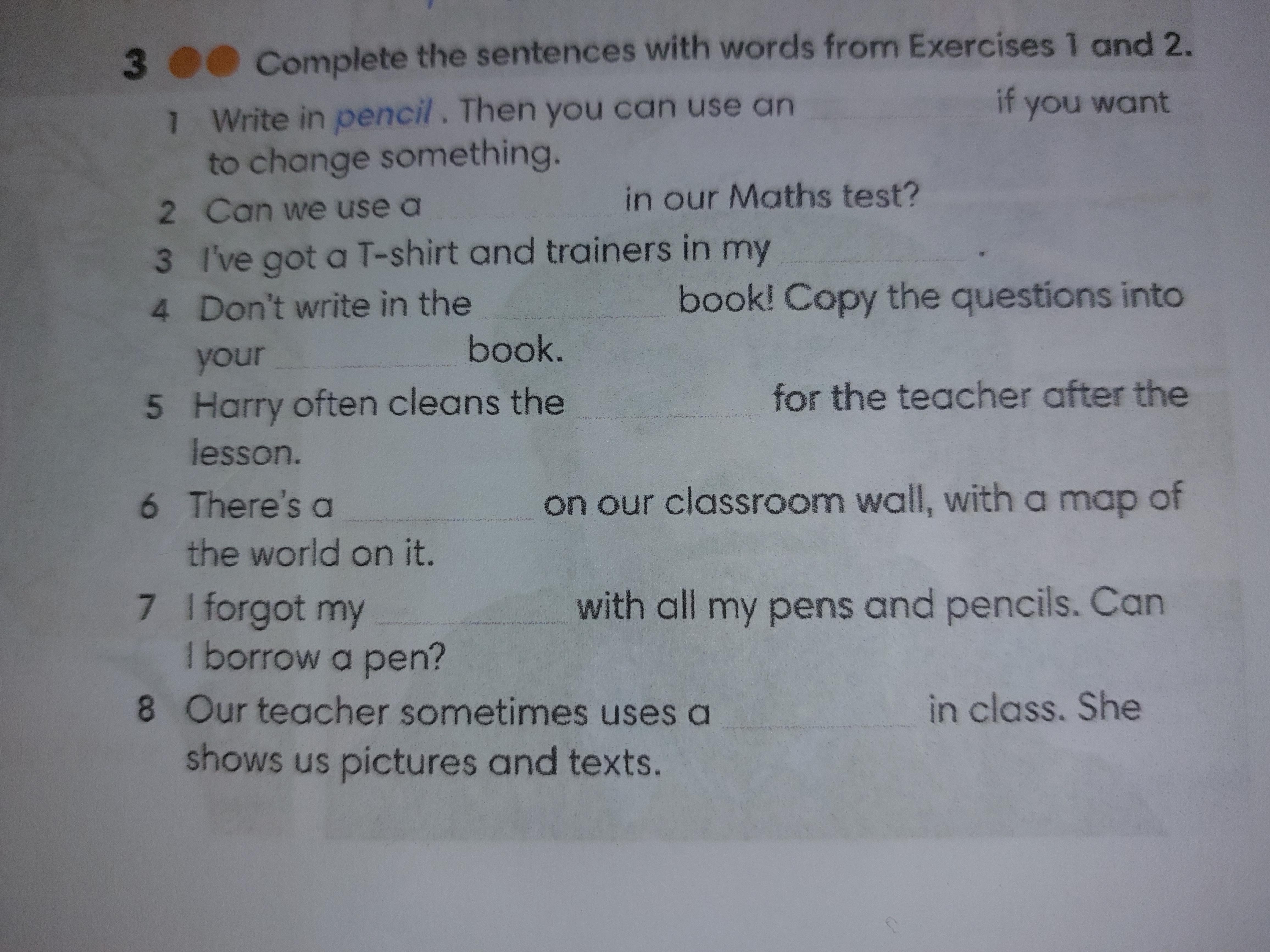 Ответ: pencil, calculator, wardrobe, note, copy, board, poster, pencil case, computer