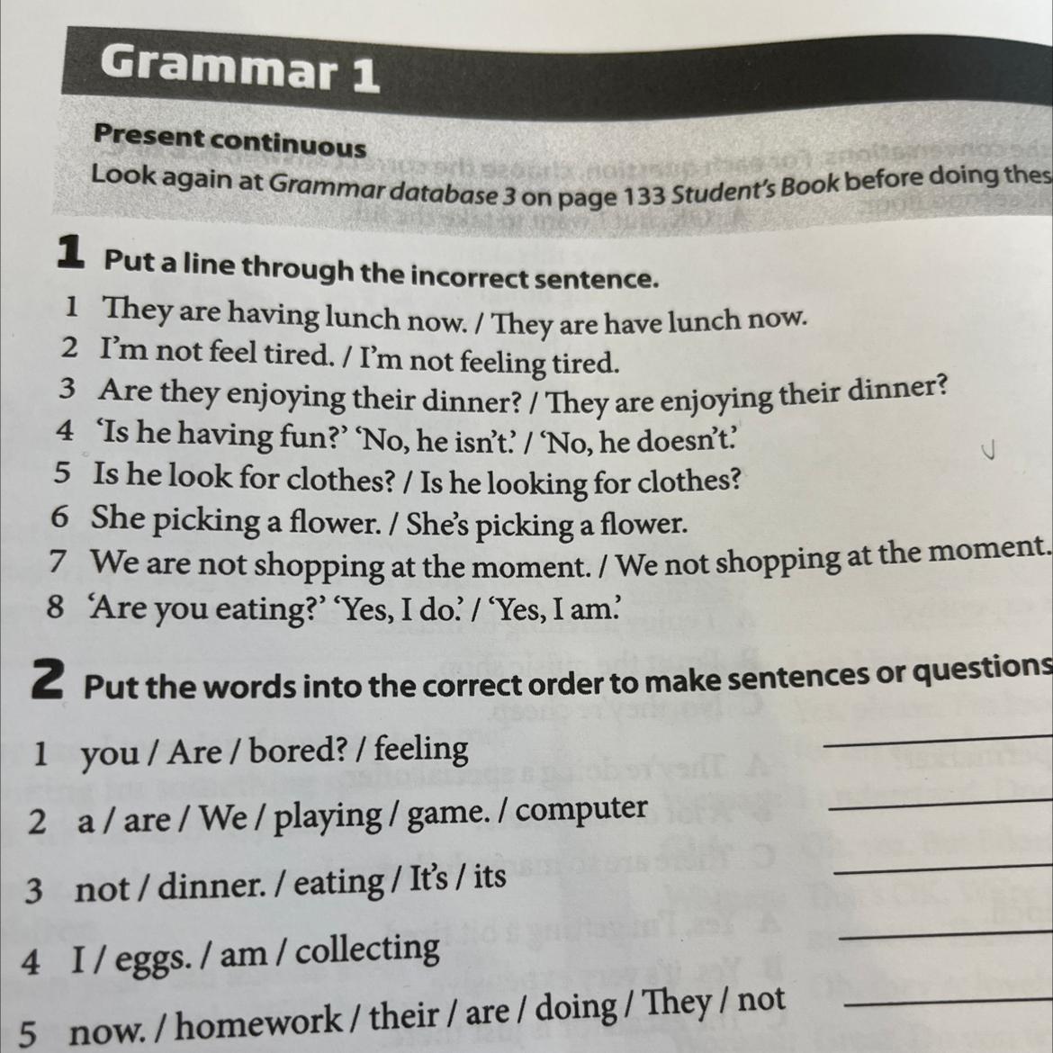 1 Put a line through the incorrect sentence.