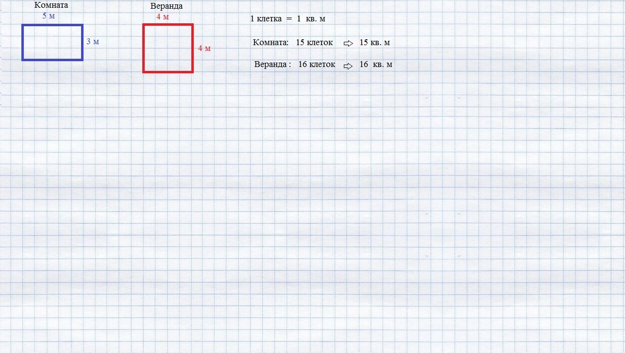 3) 16 - 15 = 1 (кв. м ) на столько больше площадь веранды, чем комнаты
