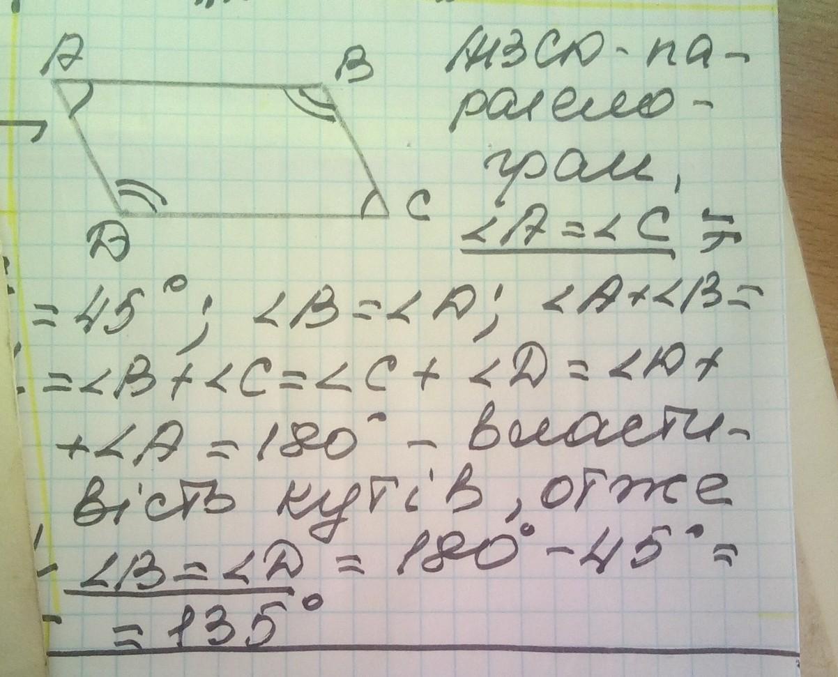 Знайдіть кути паралелограма, якщо один з них дорівнює 45º.​