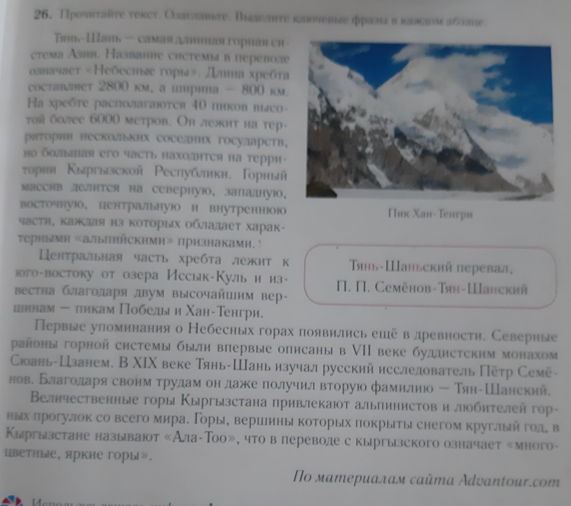 1-й абзац: Тянь-Шань - самая длинная горная система в Азии.