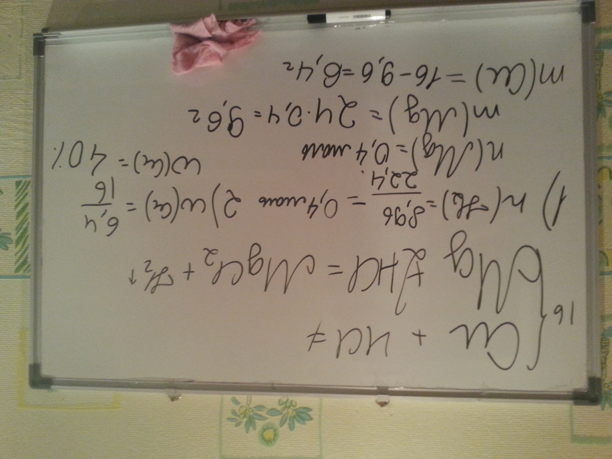 смесь опилок меди и магний массой 16 г поместили в избыток соляной кислоты.Определите массовую долю меди в исходной смеси,если выделилось 8,96 л газа