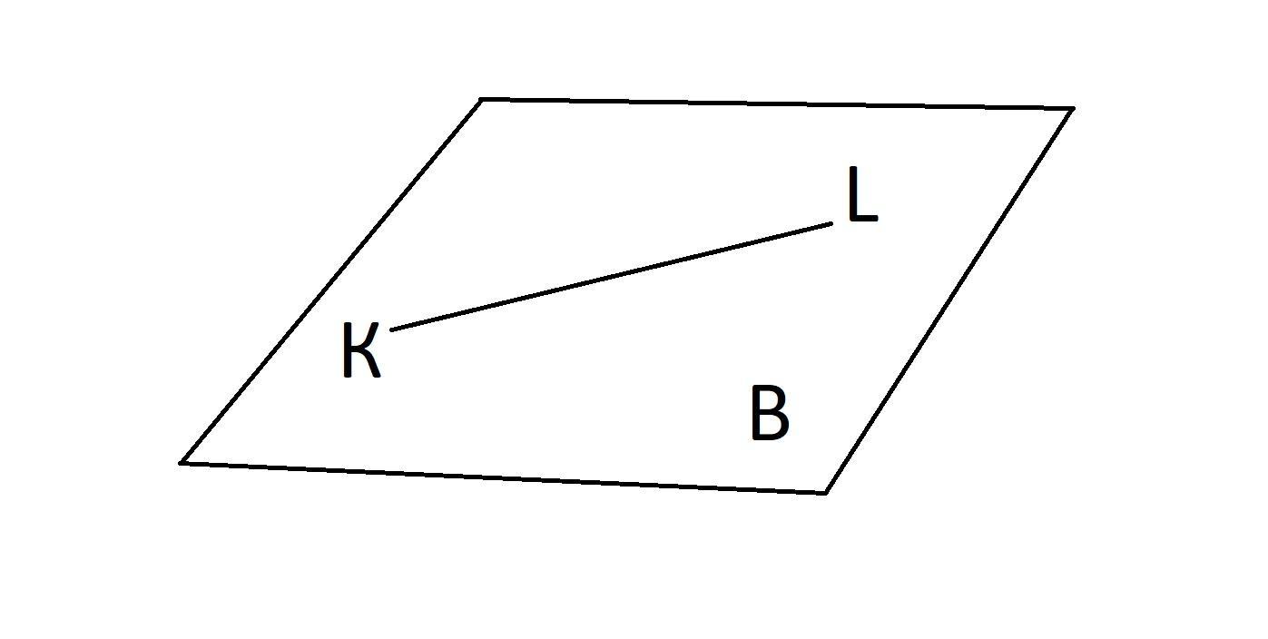 Зобразимо площину у формі паралелограма, та пряму яка їй належить.
