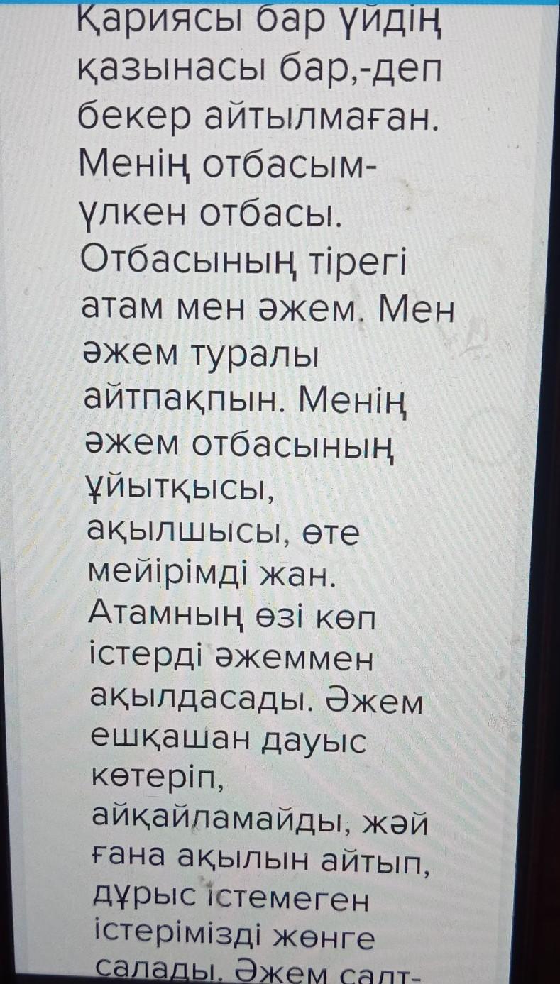 Төмендегі жоспарға сүйене отырып, "Асыл әжем" тақырыбына эссе жазыңдар.