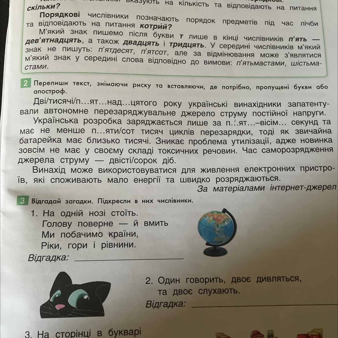 2 Перепиши текст, знімаючи риску та вставляючи, де потрібно, пропущені букви або