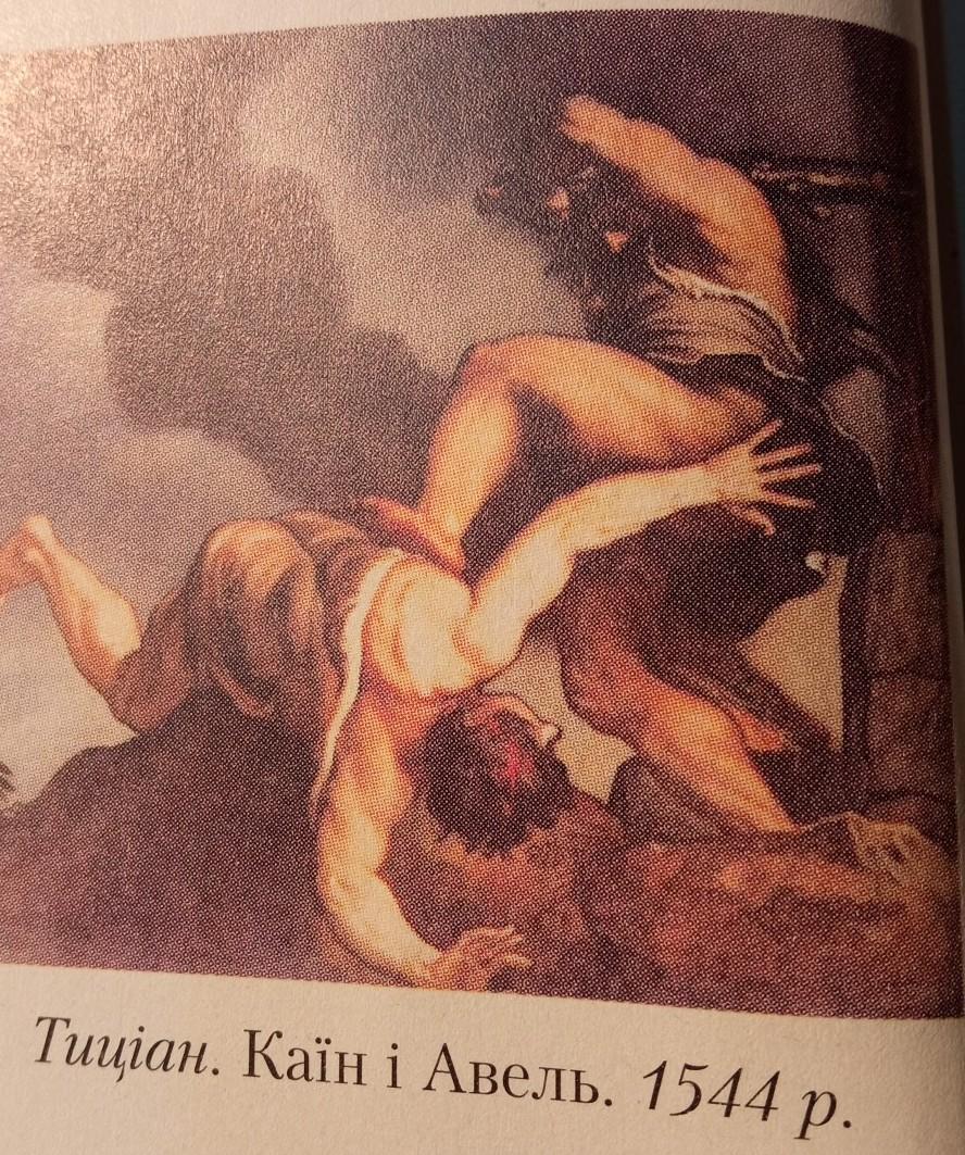 Розгляньте картину Тіціана «Каїн і Авель».Яке враження вона справила на вас? Чому, на вашу думку, митець обрав для героїв саме такі пози? БУДЬ ЛАСКА ДОПОМОЖІТЬ