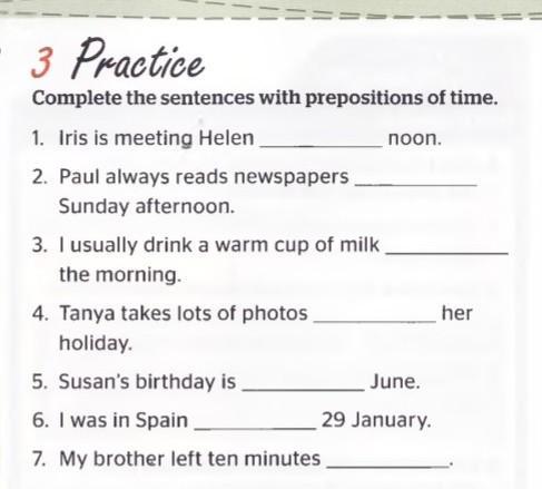 1 after 2 on 3 in 4 of 5 in 6 on 7 ago