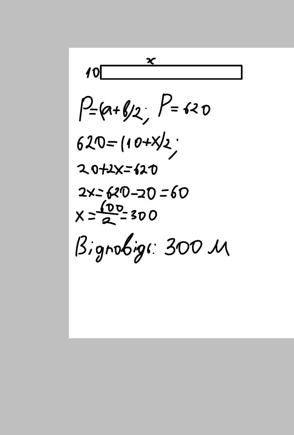 Периметр злітно-посадкової смуги для літаків становить 620 м. Ширина смуги - 10м. Яка її довжина?
